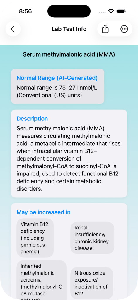 Understanding lab test results is a complex task. For healthcare students and patients, this complexity can be especially daunting. TestDx for iPhone was developed as an educational tool offering AI-supported insights that help clinicians, students and patients understand lab tests and their results in adults (18+).